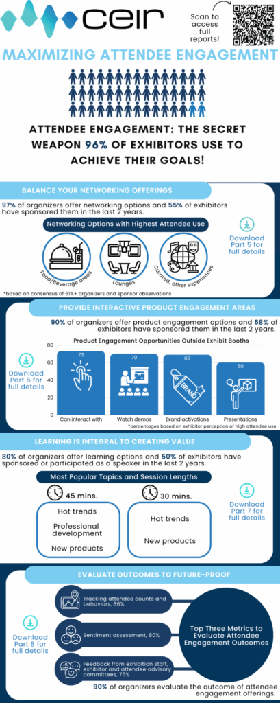 This report series provides benchmarks and insights to help brand marketers and organizers understand which attendee and exhibitor engagement approaches are working best today in a post-pandemic world and which are most effective in supporting specific exhibitor goals. This year, the geographic scope of the study is North America, including exhibitor and organizers active in the U.S., Canadian and Mexican markets.